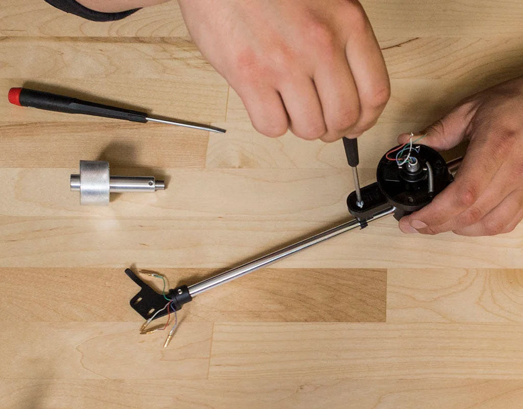Our expert technicians assemble and test our turntables, speakers, and preamps by hand. Keeping assembly in-house and working with local suppliers allows us to deliver a high level of quality and craftsmanship.